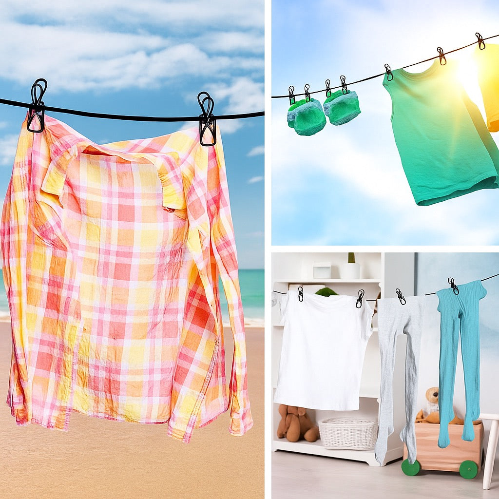 Bilo da ste kod kuće, na putovanju ili u prirodi, Flexiclip žica za veš sa štipaljkama je savršeno rešenje za brzo i efikasno sušenje odeće. Lagana, fleksibilna i otporna na vremenske uslove – uvek spremna za upotrebu, gde god da se nalazite.